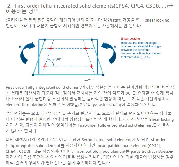 안녕하세요. 다쏘시스템코리아 SIMULIA 브랜드팀입니다. 본 포스팅에서는 굽힘하중 조건에서 연속체 요소(Continuum element) 종류에 따른 해석 결과 변형률/응력의 특징과 변형률/응력 결과의 정확도
