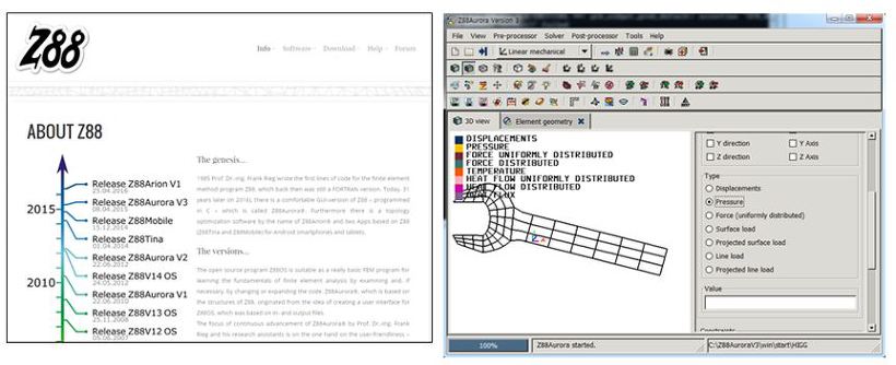 -Z88 AURORA는 2009년부터 배포되었으며 FEM open source 코드인 Z88의 확장판이며 Z88은 GNU-GPL license를 갖는 open source FEM임